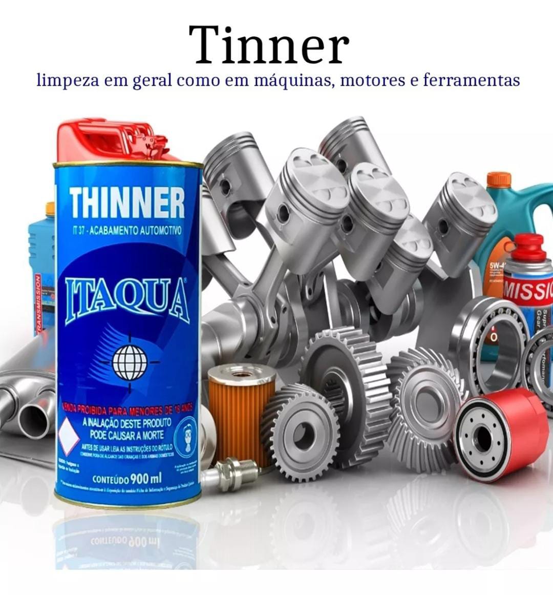 O thinner é um produto indicado na aplicação de primers sintéticos e universais, é utilizado também na diluição de tintas a óleo, vernizes acrílicas e resinas, proporcionando uma alto poder de brilho e secagem rápida da superfície. Pode ter seu uso também na limpeza de equipamentos ou superfícies respingadas.